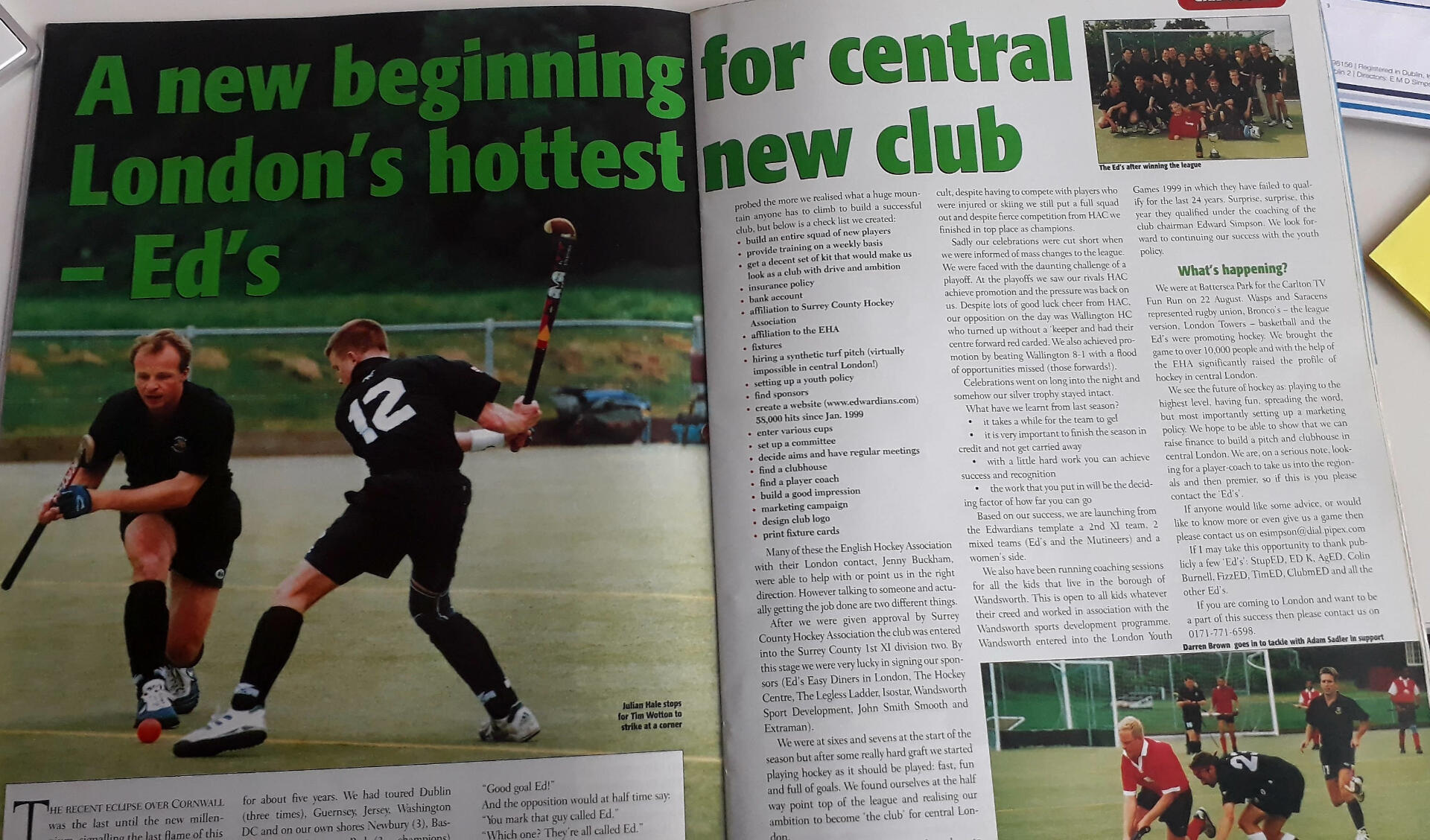 We put lot of effort into the Ed’s brand, sponsors (Ed’s Easy Diner, John Smiths Smooth, Lucozade, Hockey Centre, The Legless Ladder, etc perfect sponsors!), the teams, where we played, how we played, website, that combined made for a lasting experience, this as you can imagine was way different to what was being offered by other clubs at the time, like one which was founded in 1905 in Wandsworth…which we broke loose from to set up the Ed’s.